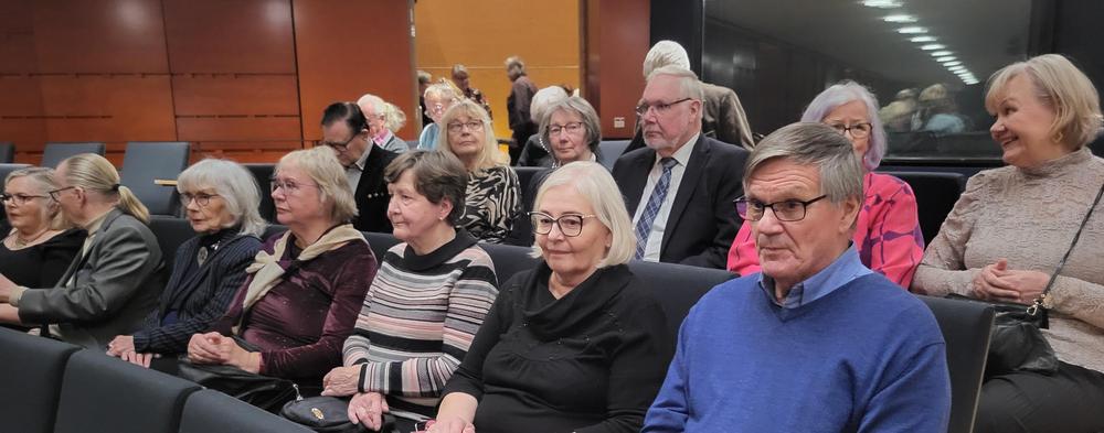 Lähes 40 senioria kokoontui Sibeliustalolle nauttimaan Finnhits -kokoelmien ikivihreitä menestyskappaleita. Tulkitsijoina esiintyivät Nina Tapio, Annika Eklund, Tomi Metsäketo ja Sami Hintsanen.