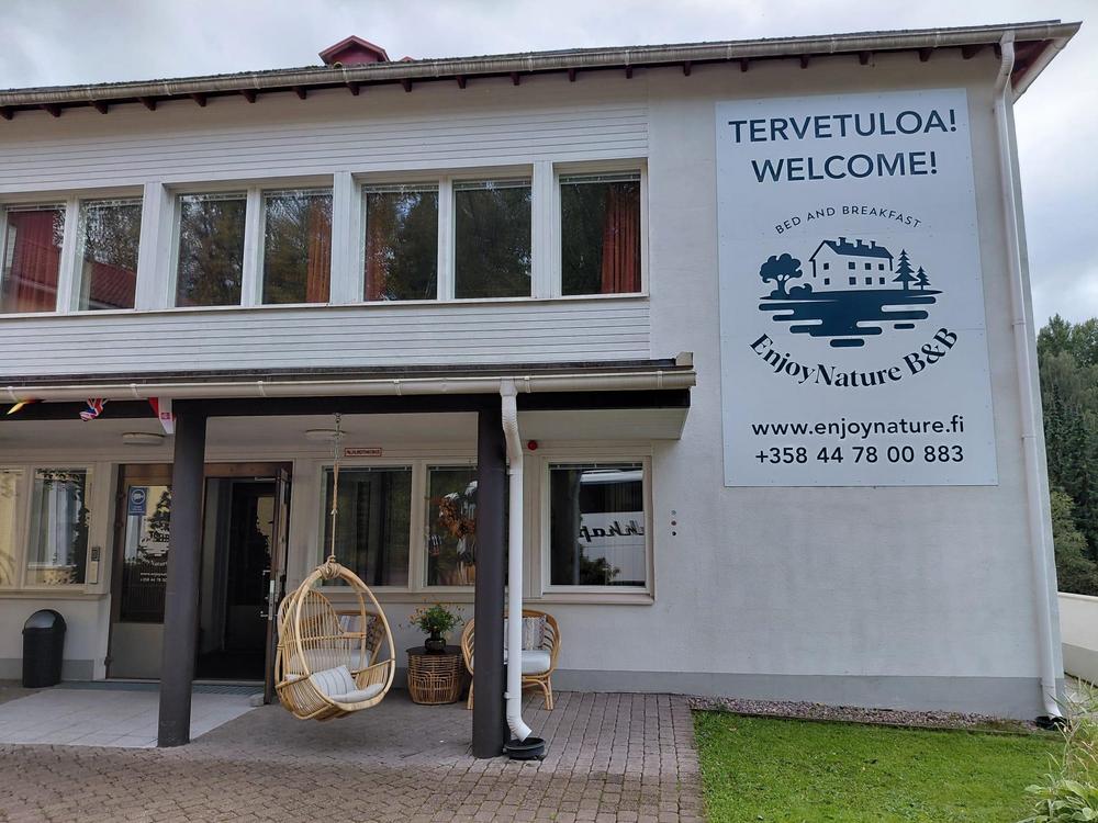 Seuraavaksi bussimme kuljetti meidät EnjoyNature B&B:iin, joka sijaitsee 2,9 km:n päässä Hollolan kirkolta. Siellä nautimme maukkaan lounaan ja tutustuimme entisen Vanhainkodin uudistettuihin tiloihin.