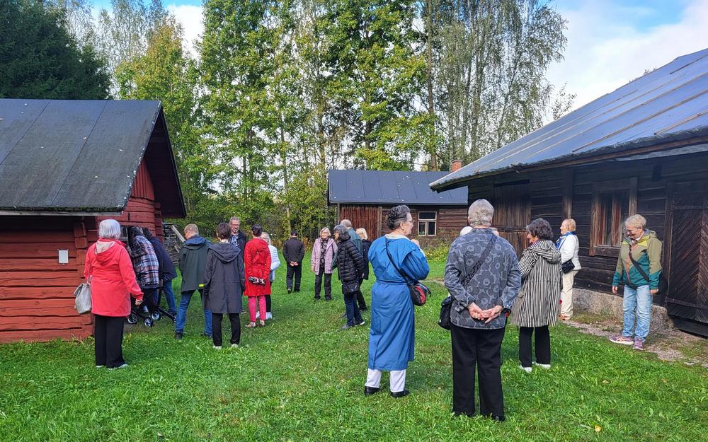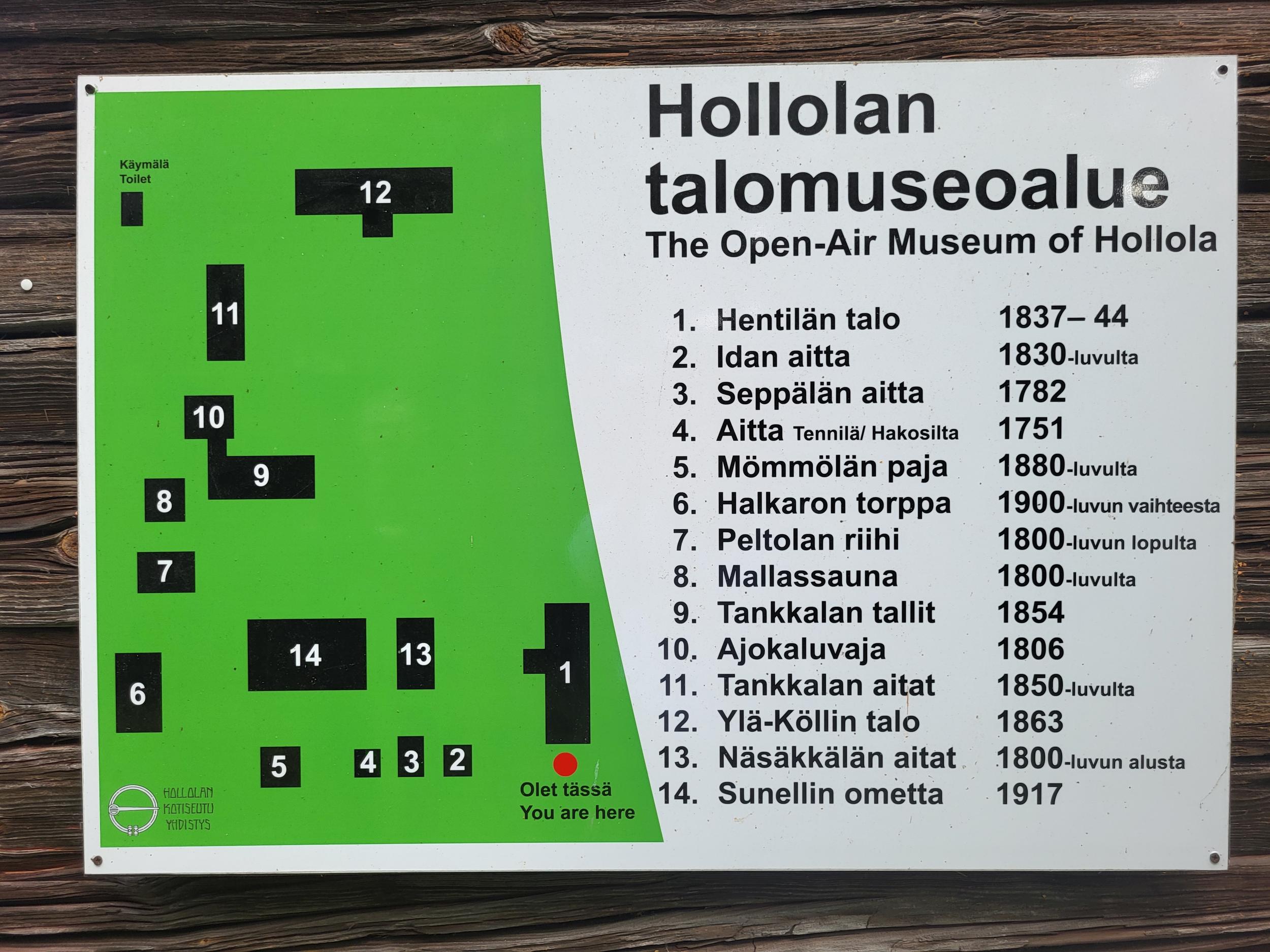 Ensimmäisenä saavuimme Hollon kirkolle ja siellä tutustuimme Kotiseutumuseoon. Kotiseutumuseoon kuuluvat Hollolan Esinemuseo ja talomuseoalue. Siellä riitti paljon mielenkiintoista nähtävää ja aurinkokin tuli esille.
