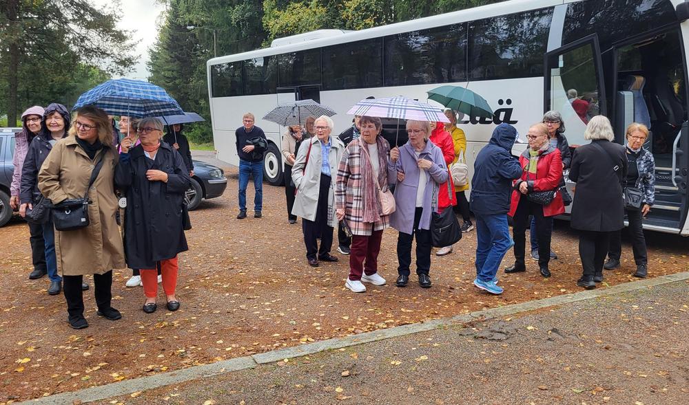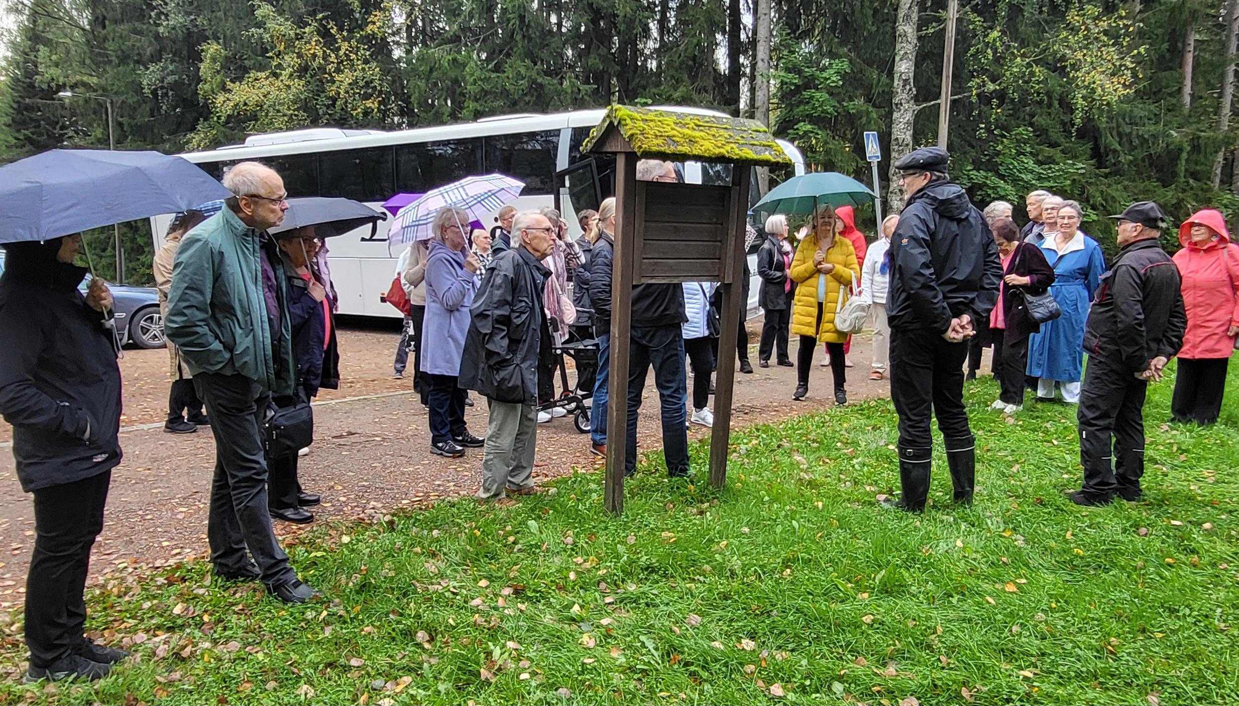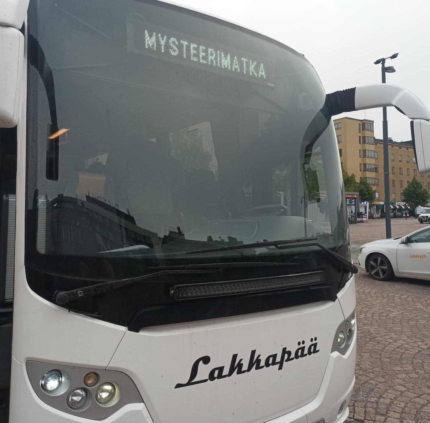 Marolankadun turistipysäkiltä lähdimme tihkusateen saattelemina Lakkapään "oikean kuljettajan" ohjaamina kohti mysteerejä.