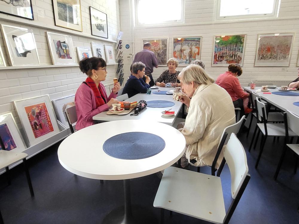 Esillä oli Säreistöniemen aiempaa tuotantoa ja muutakin taidetta. Nautimme myös kukin omakustanteisesti kahvit tai muuta virkistystä ihanassa ympäristössä mm. Rakkauspuistossa.