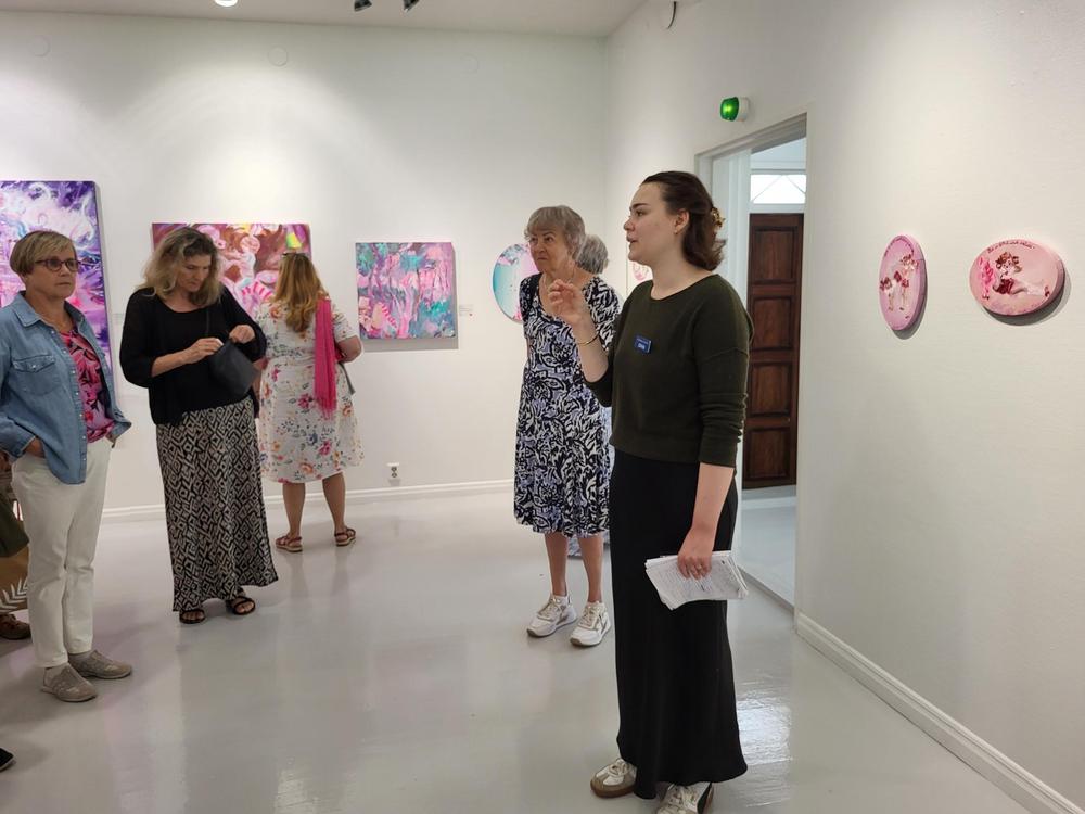 Ihastuttava, asiantunteva oppaamme johdatti meidät Salmelan ja taiteen saloihin parin tunnin opastuskierroksella.