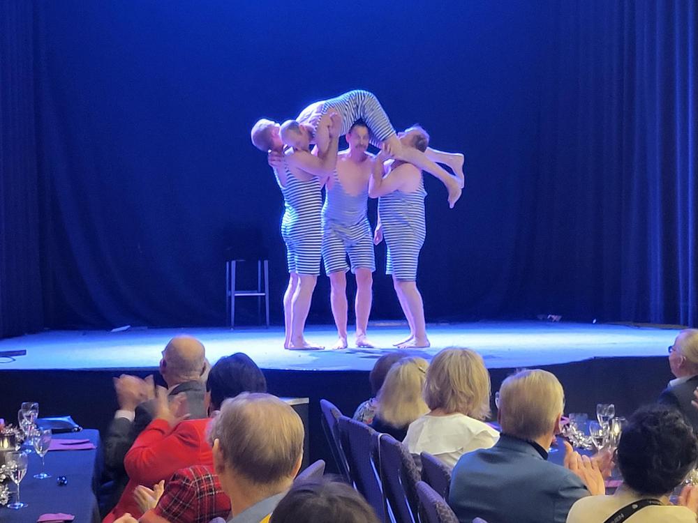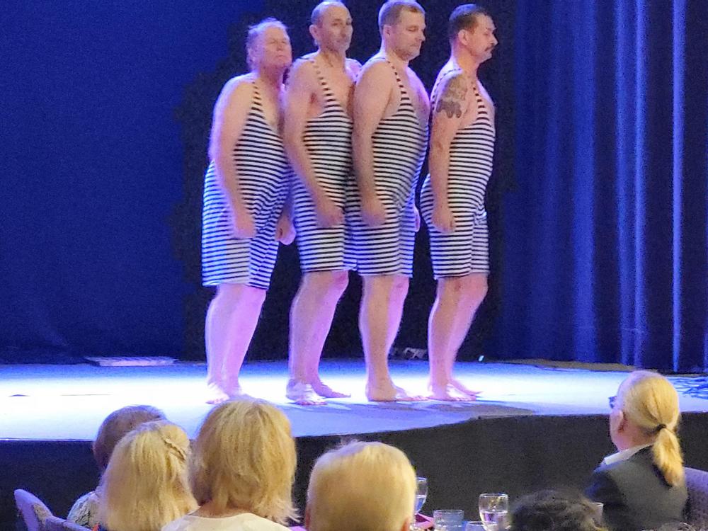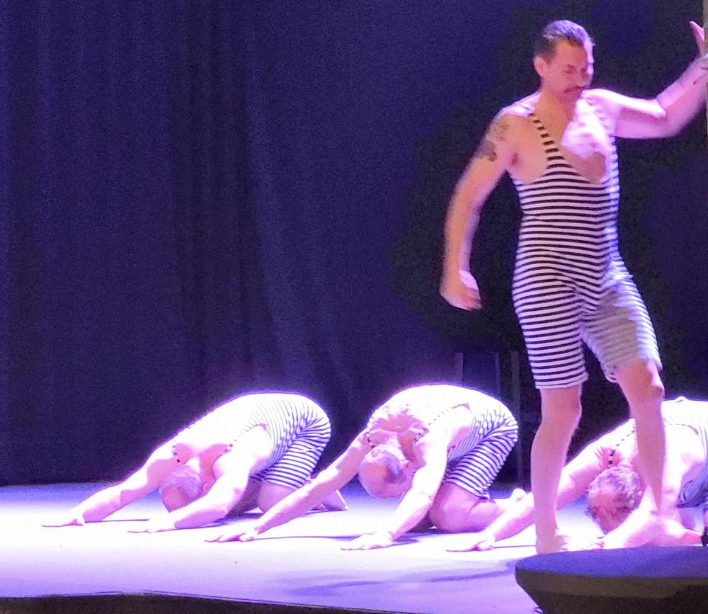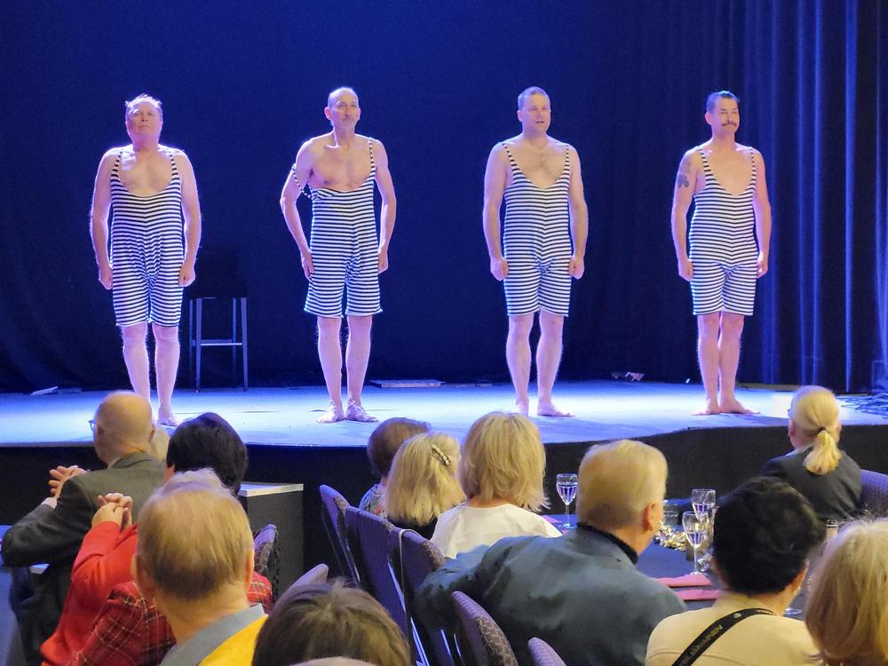 Lounaan jälkeen senioreille esiintyi Mallusjoen hitaat miesvoimistelijat. Esityksen aikana nauru oli herkässä kun voimistelijat tekivät mitä moninaisempia liikkeitä hitaasti edeten.