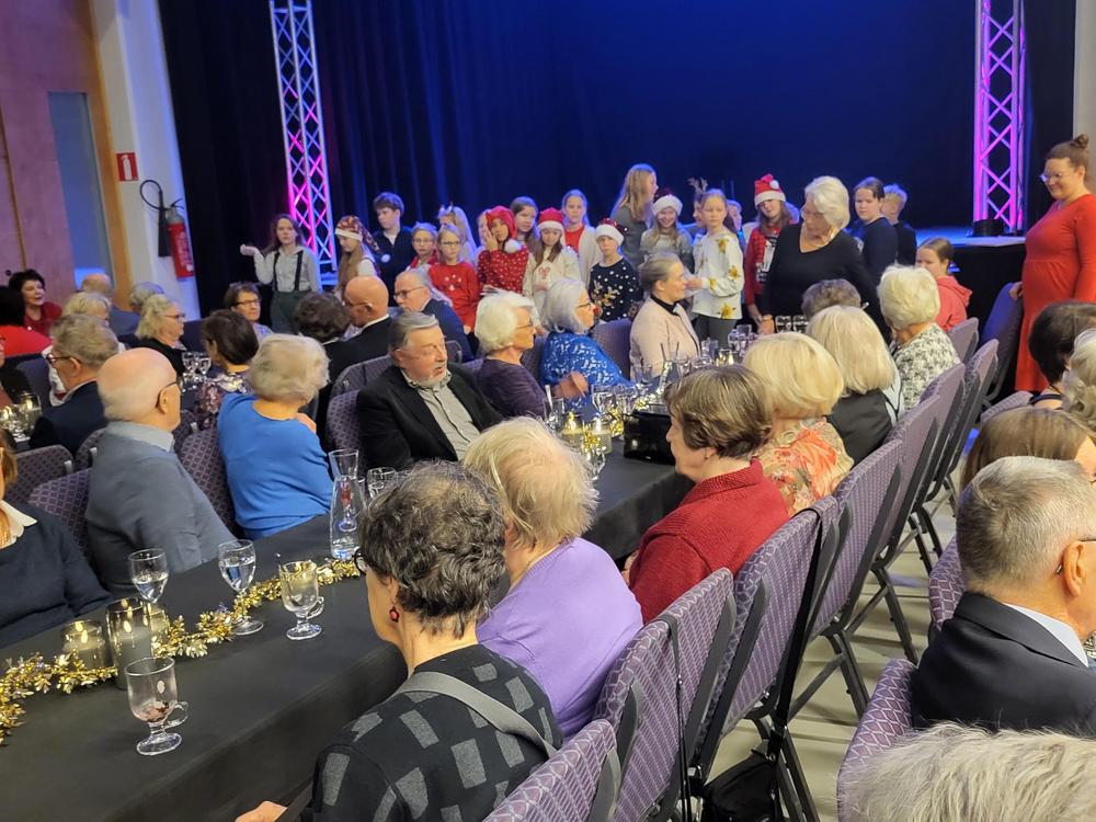 Tapahtuman alussa pj. Marketta Iso-Kuortti toivotti seniorit tervetulleiksi, jonka jälkeen Lotilan koulun 5. musiikkiluokan oppilaat, opettajansa ja muutaman oppilaan säestäminä, esittivät jouluisia lauluja. Taisipa tänäkin vuonna senioreilta muutama kyynelkin vierähtää lasten heleitä ääniä kuunnellessaan.