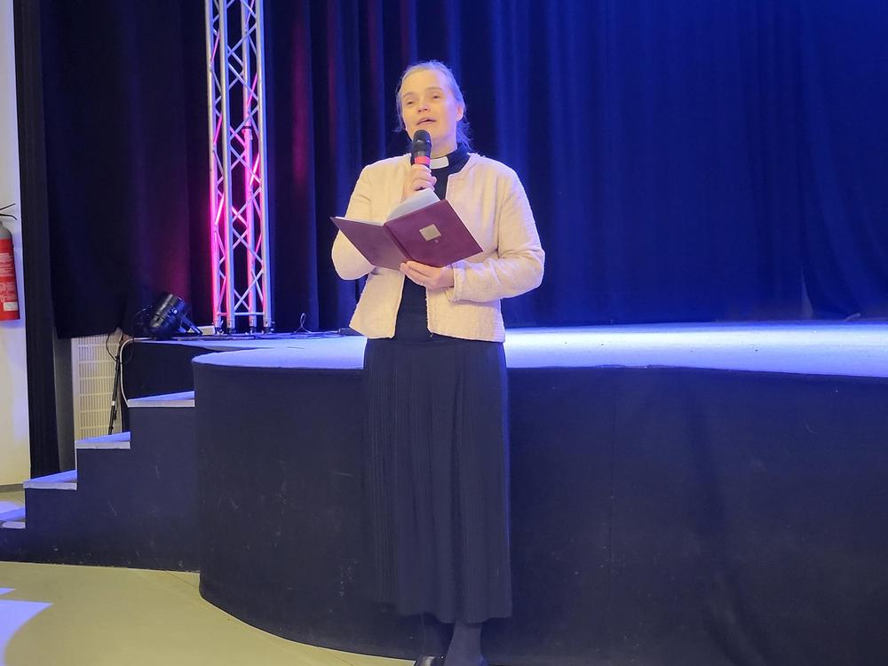 Ennen ruokailua Katikeesia Hertsi toi tervehdyksen Keski-Lahden seurakunnan edustajana.