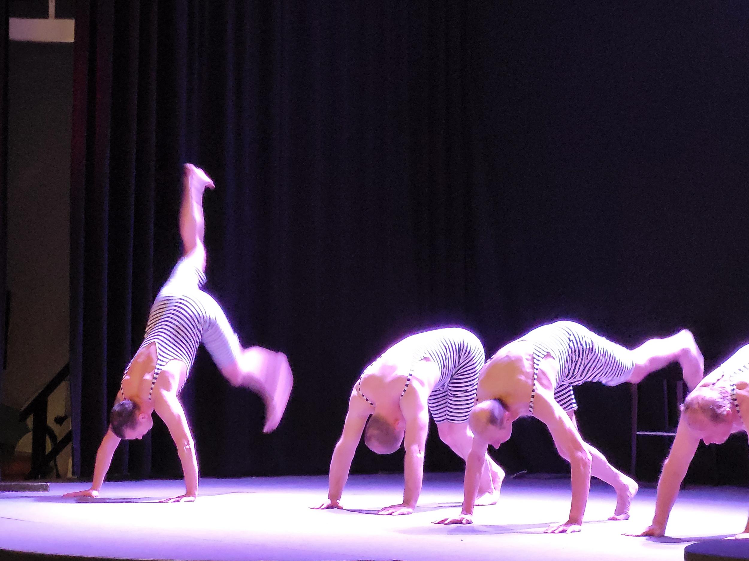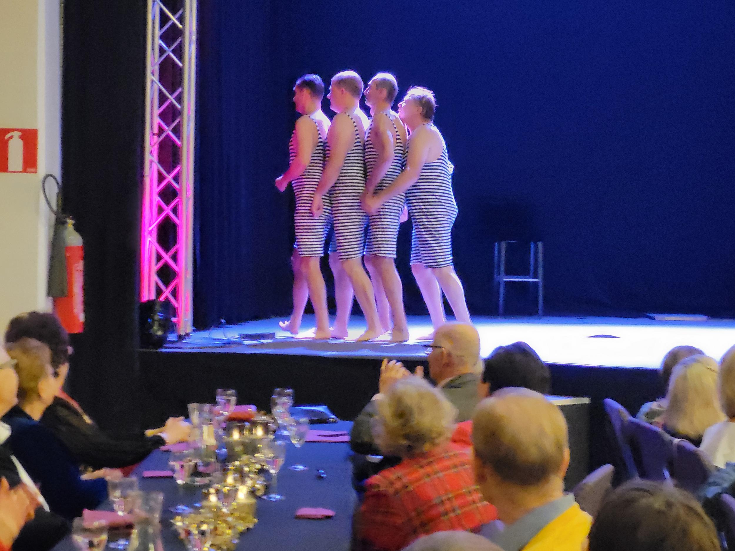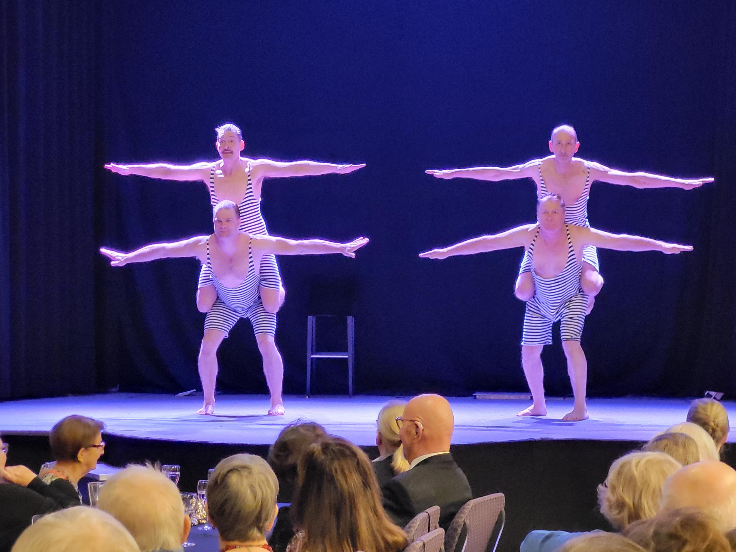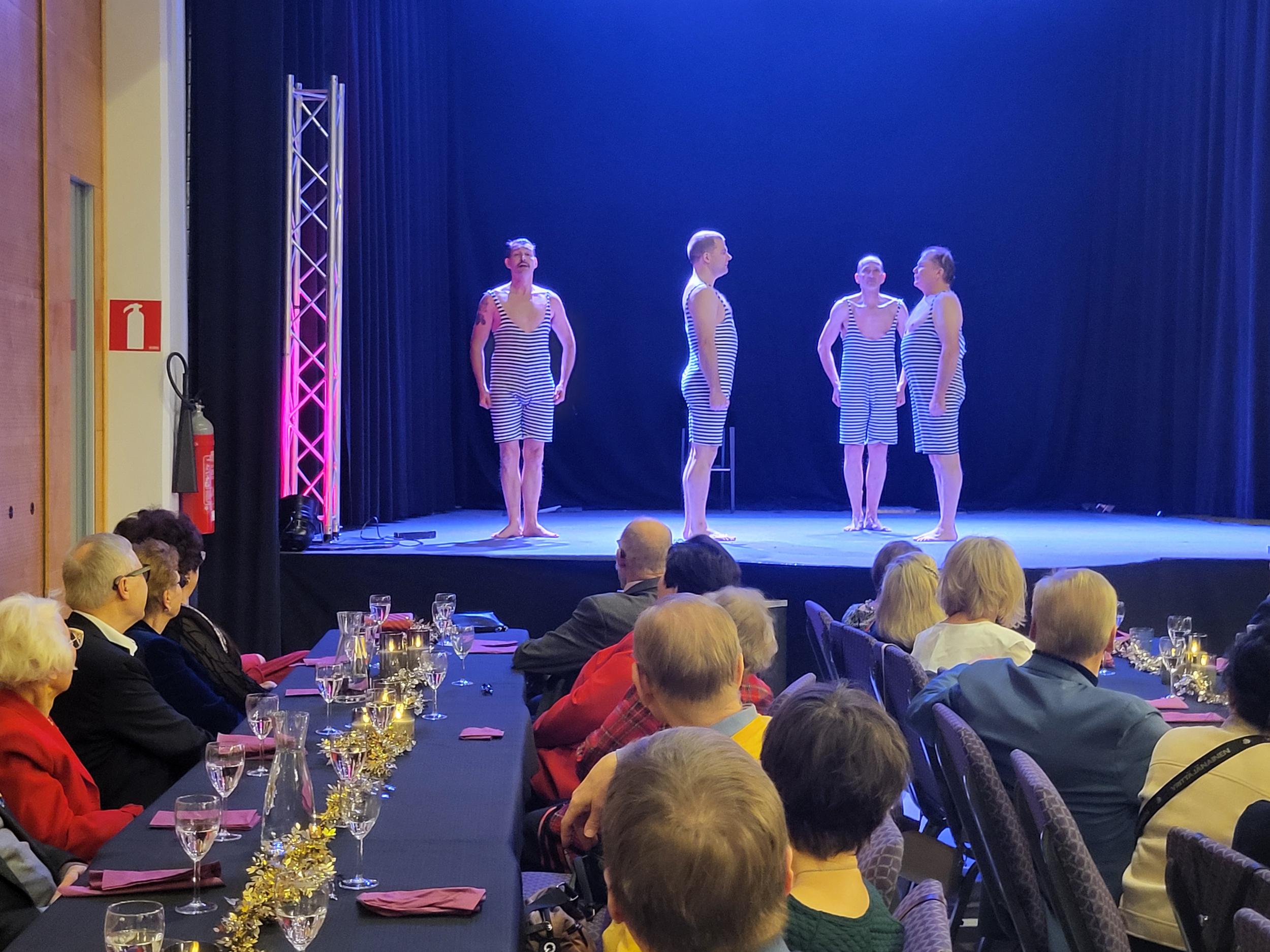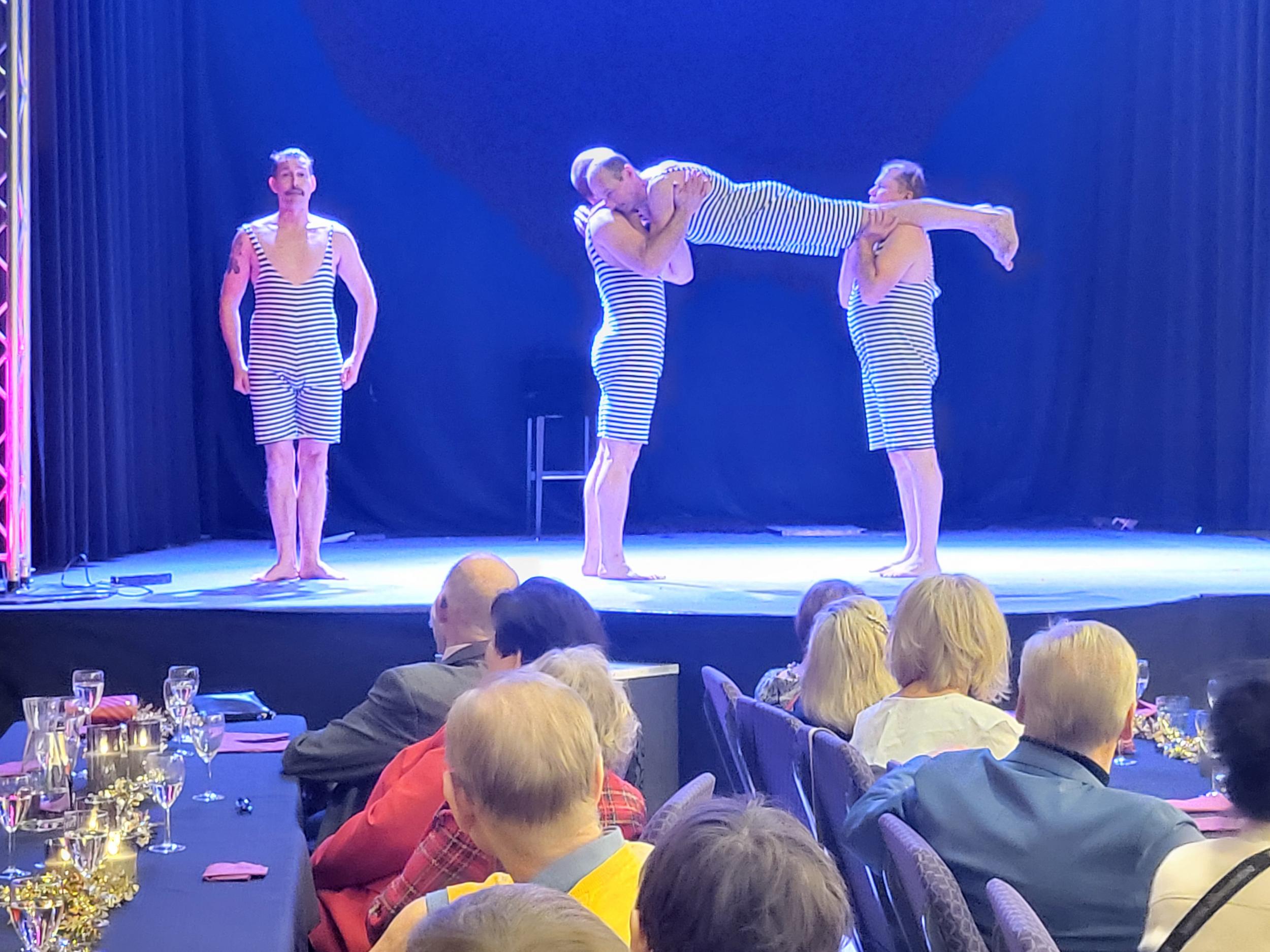 Lounaan jälkeen senioreille esiintyi Mallusjoen hitaat miesvoimistelijat. Esityksen aikana nauru oli herkässä kun voimistelijat tekivät mitä moninaisempia liikkeitä hitaasti edeten.