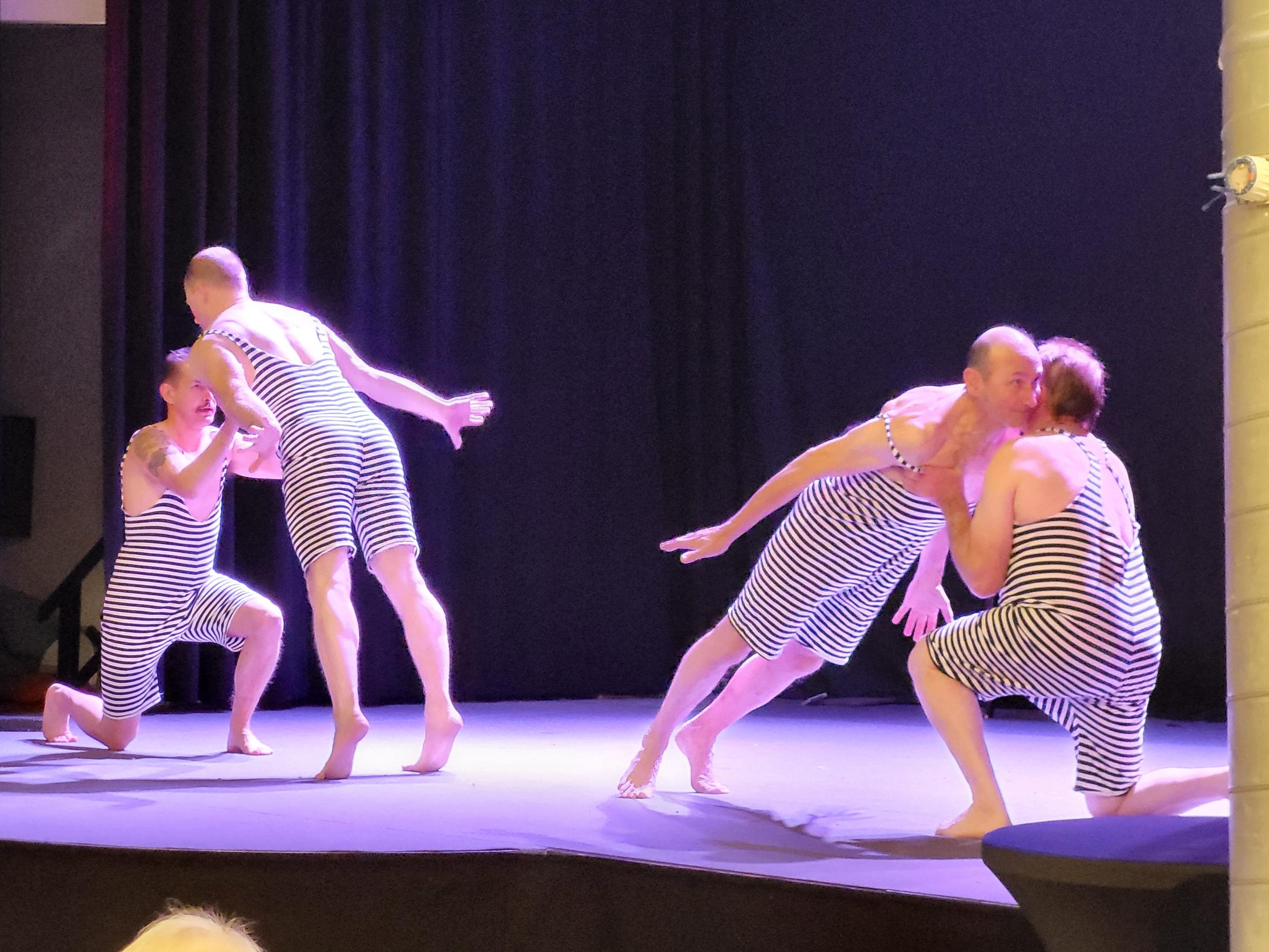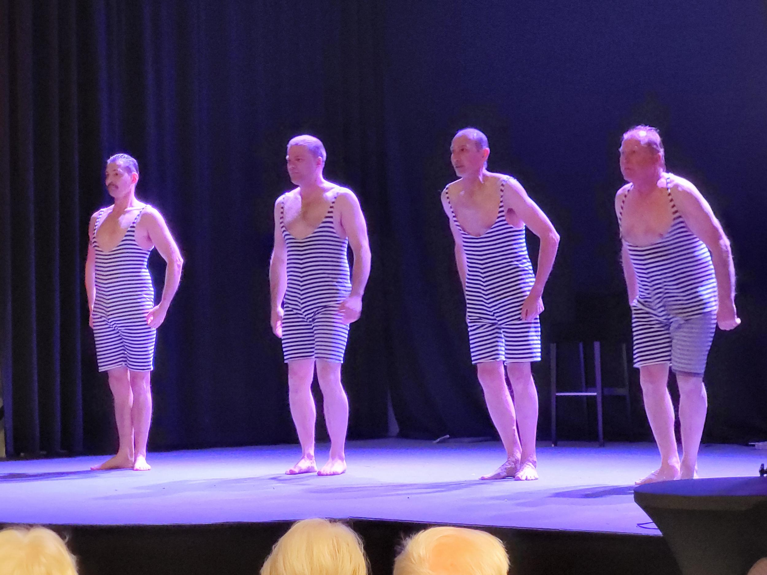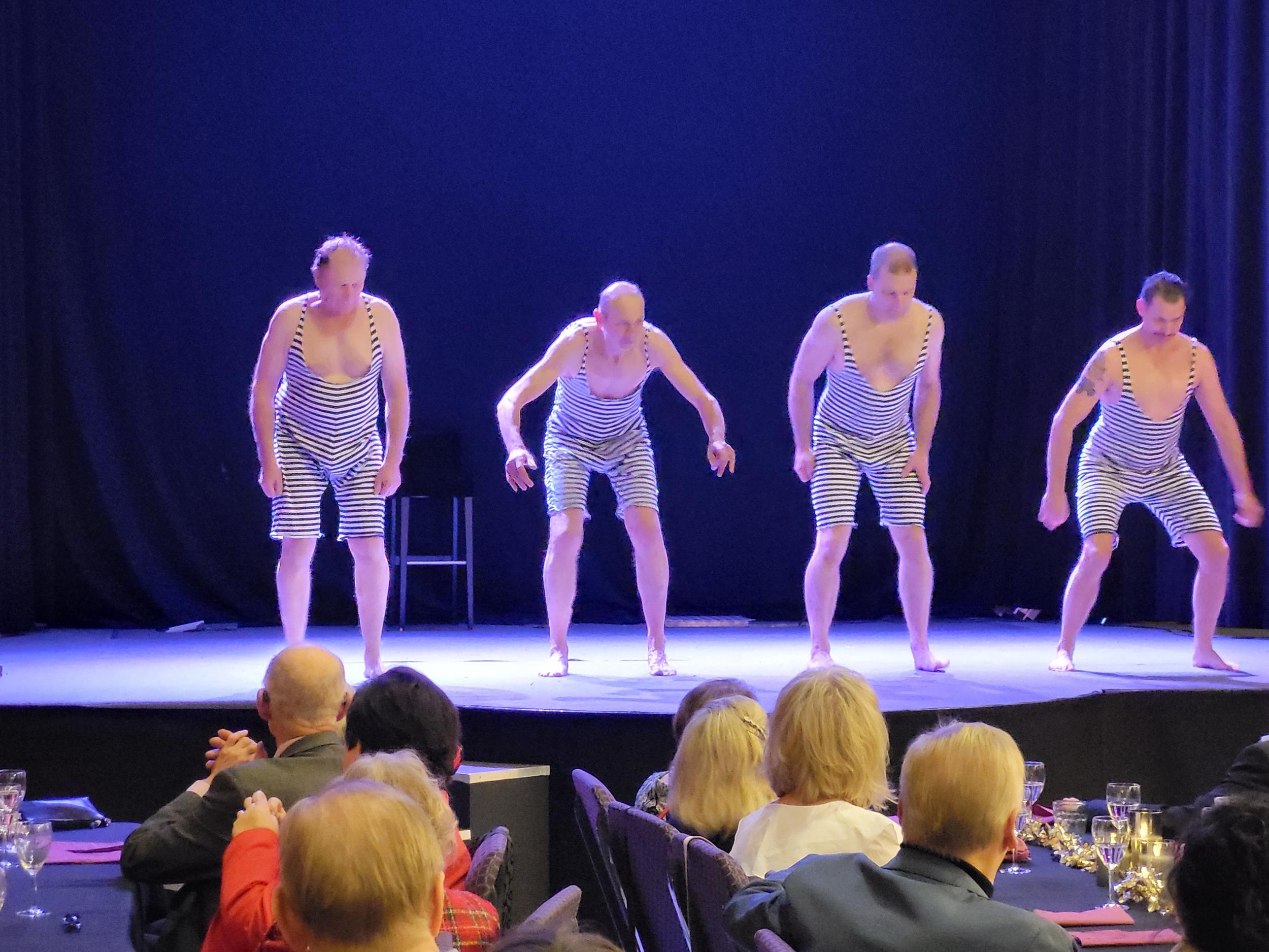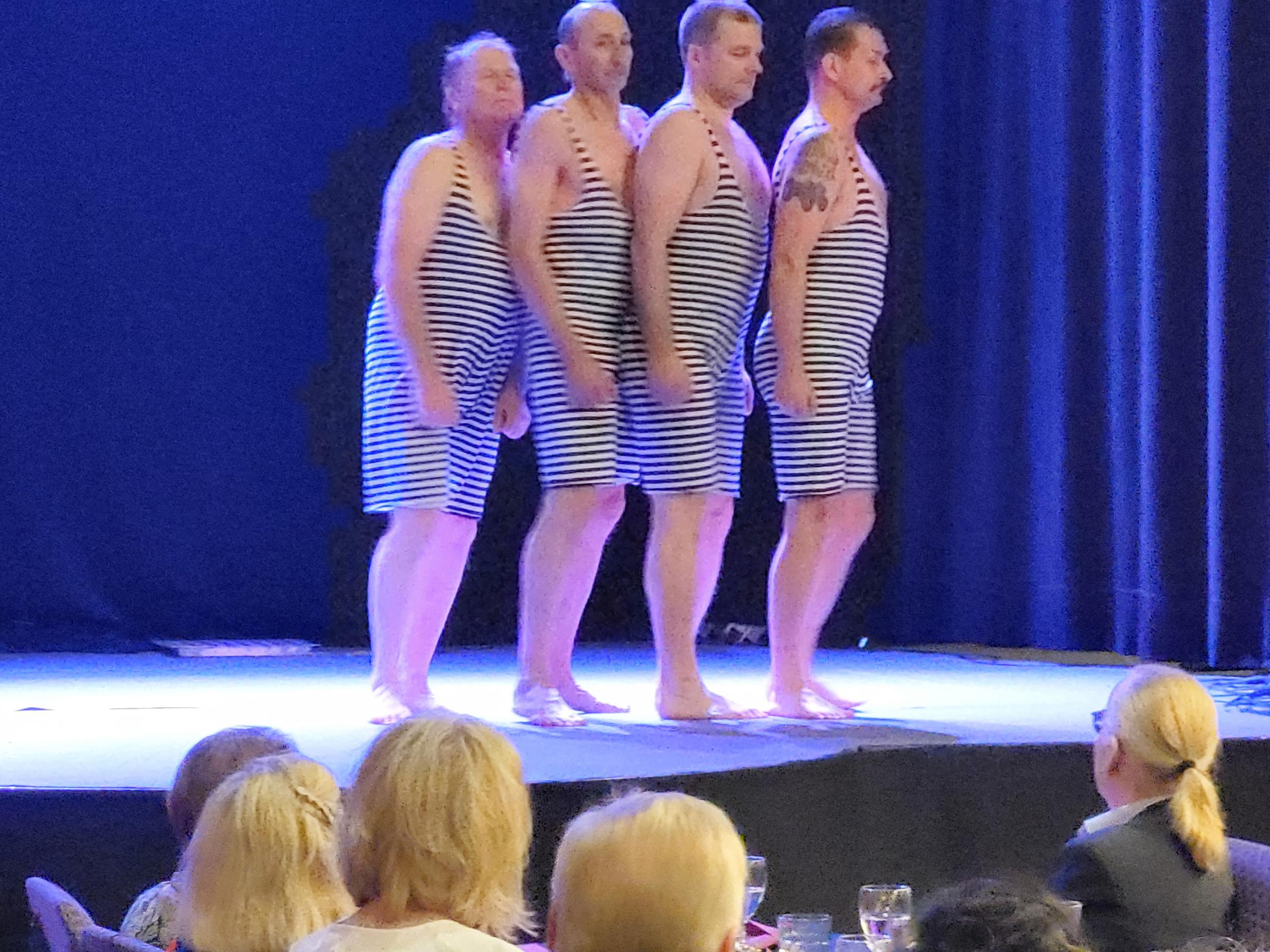 Lounaan jälkeen senioreille esiintyi Mallusjoen hitaat miesvoimistelijat. Esityksen aikana nauru oli herkässä kun voimistelijat tekivät mitä moninaisempia liikkeitä hitaasti edeten.