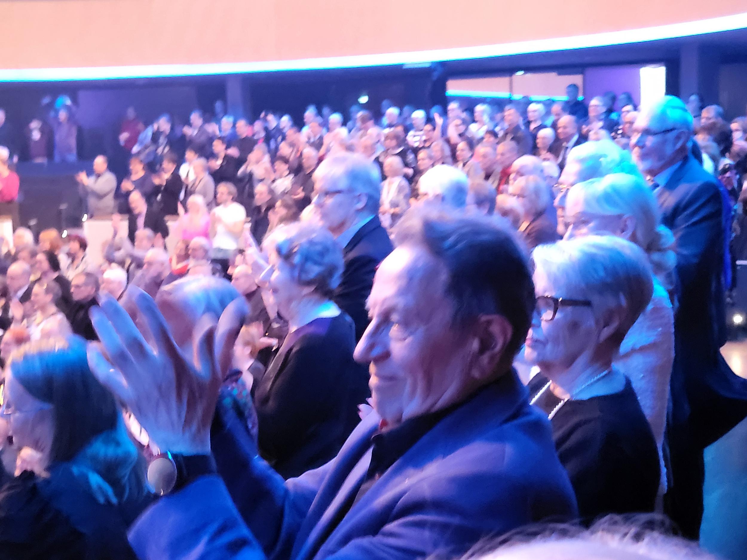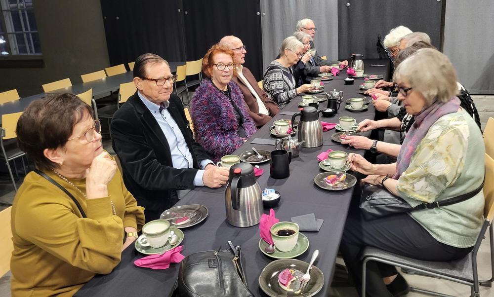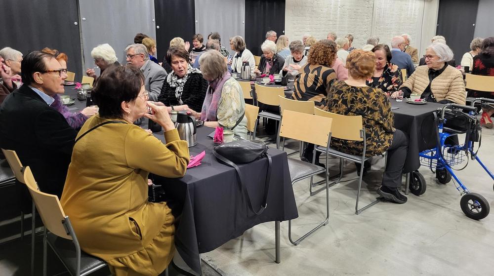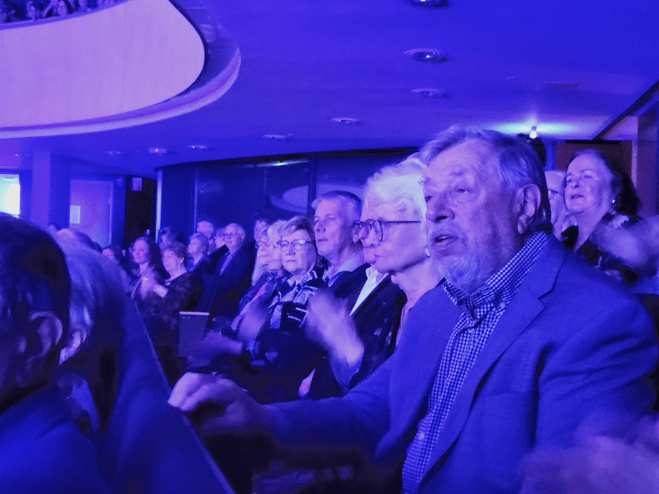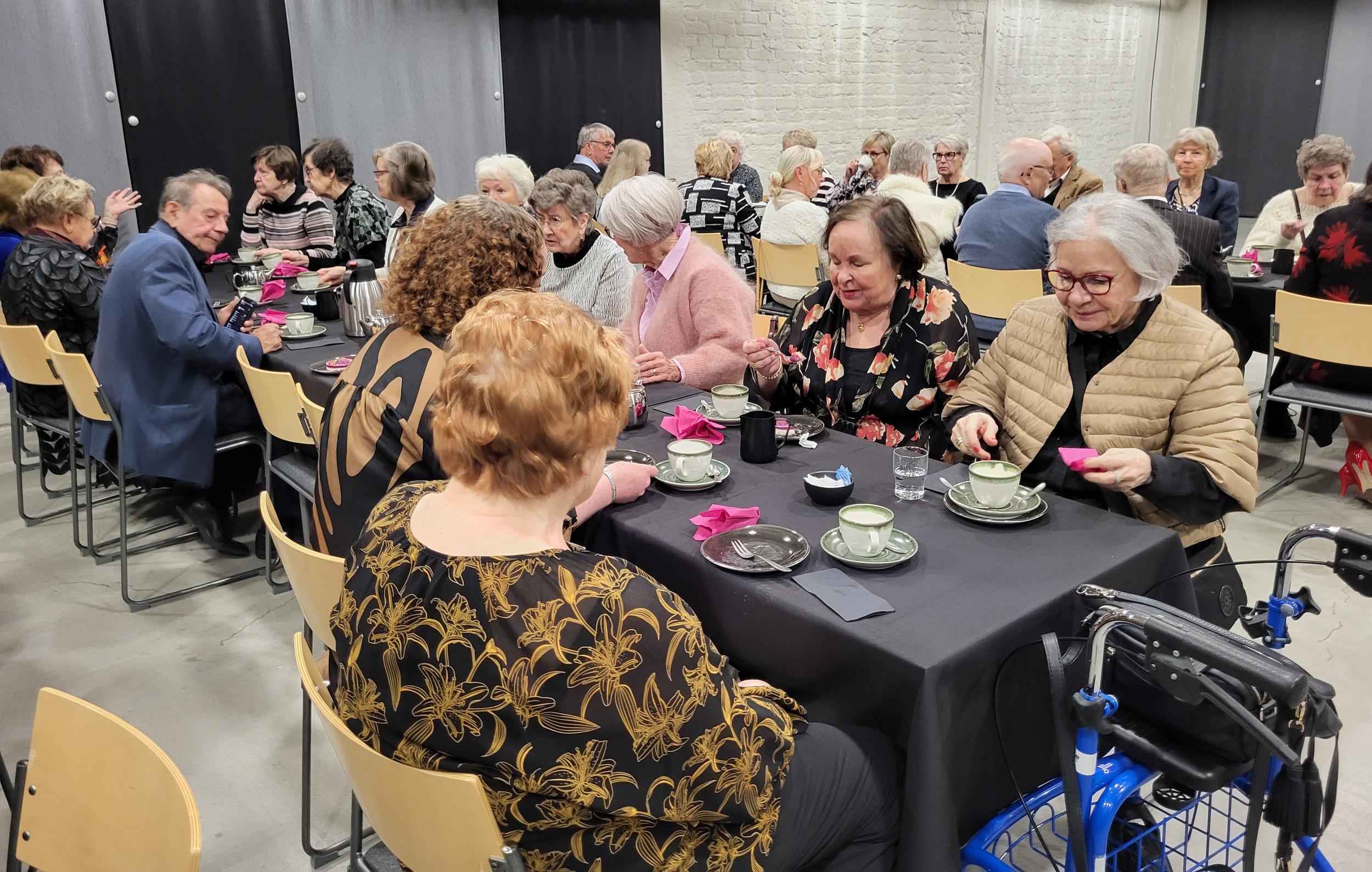 Reilu joukko senioreitamme oli saapunut kuuntelemaan Kari Tapion legendaarisia sinivalkoisia lauluja ja tarinoita hänen elämästään ja urastaan. Konsertti oli miltei loppuunmyyty ja tunnelma oli korkealla.