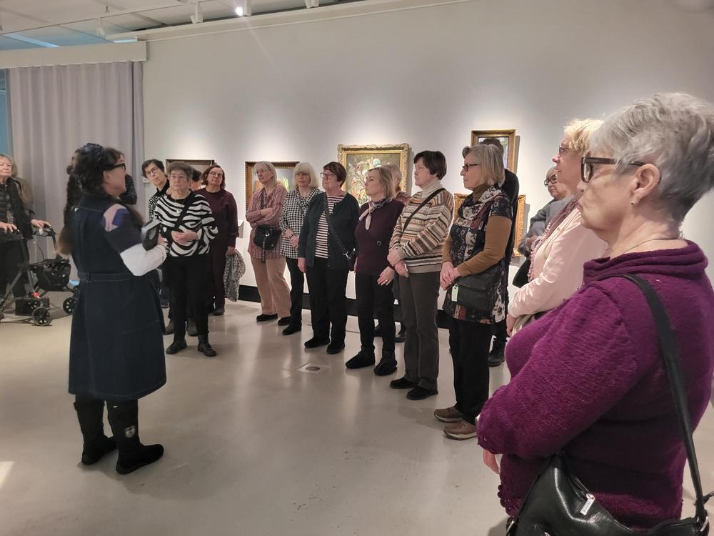 Lounaan jälkeen oli mahdollista osallistua opastettuun kierrokseen Lahden visuualisten taiteiden museo Malvan, Juuret näyttelyyn. Kierros oli oppaan opastamana hyvin antoisa. Opastetun kierroksen jälkeen osa lähti vielä omatoimisesti tutustumaan muihin näyttelyihin.