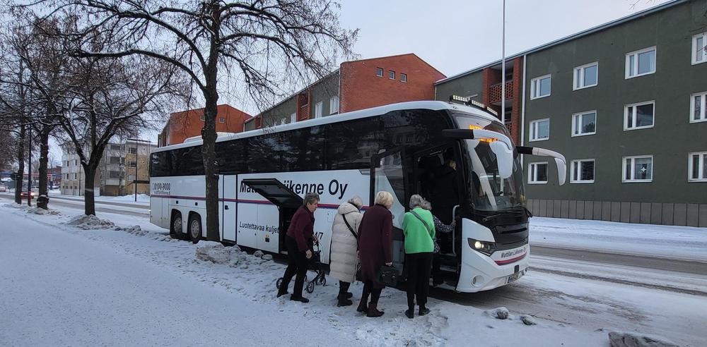 Lauantaisessa pakkasaamussa 55 senioria kokoontui Marolankadulle Mattilan liikenteen bussiin ja suuntasi kohti Kouvolaa nauttimaan Kouvolan teatterin musikaaliesityksestä "Hiljaiset sillat".