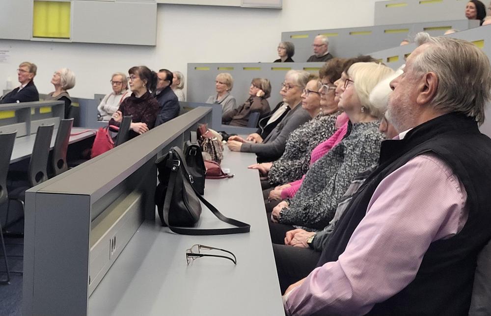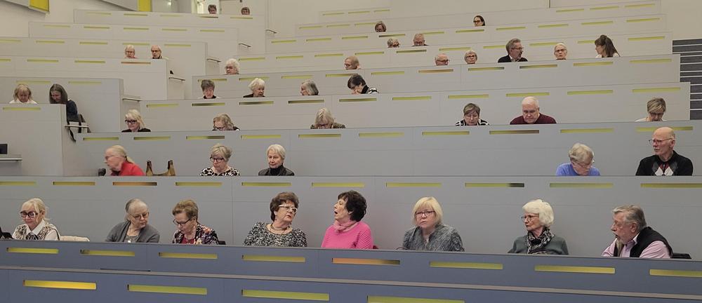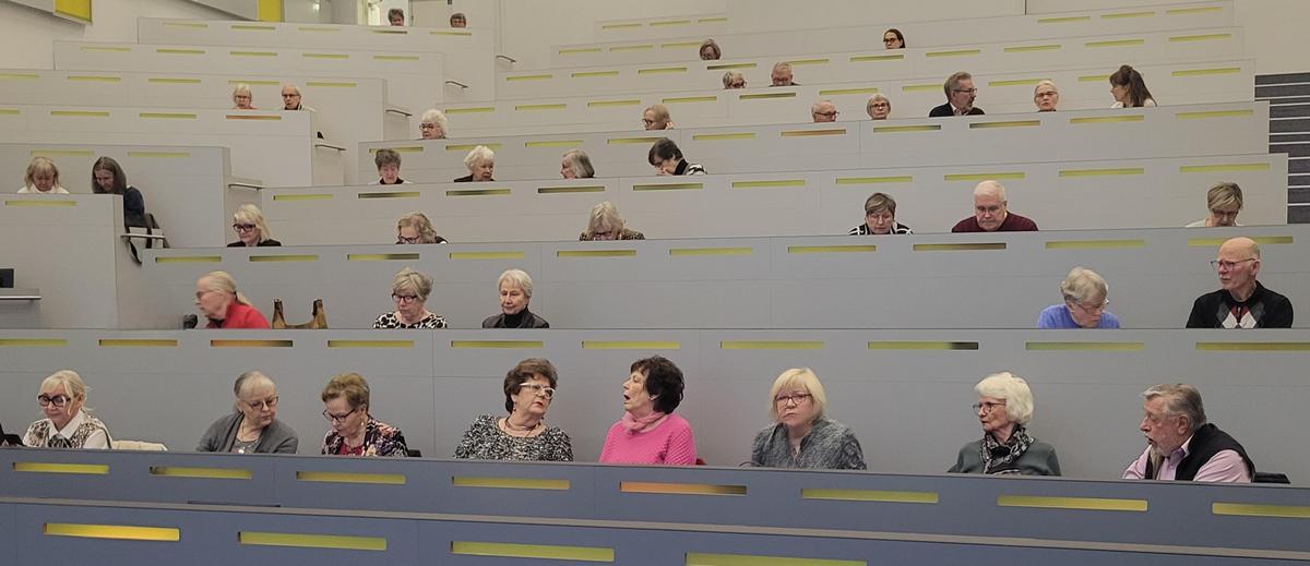 Reilut 60 senioria oli saapunut lounaalle Ravintola Fellmanniaan. Sen jälkeen oli vuorossa sääntömääräinen kevätkokous ja lopuksi vielä luento. Liikennekoulu Ajomessistästä Mari Peltosen aiheena oli "Muutoksista liikenteessä ja ikääntyminen".